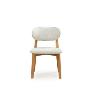 Krzesło do jadalni Neris – (zestaw 2 krzeseł) – Beżowa Tkanina Coco – Drewniane Nogi