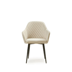 Krzesło do jadalni Maya – (zestaw 2 szt.) – Beżowa Aksamitna Tkanina – Czarne Metalowe Nogi