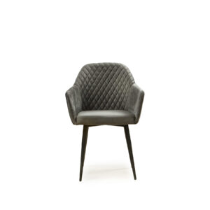 Krzesło do jadalni Maya – (zestaw 2 szt.) – Szara aksamitna tkanina – czarne metalowe nogi