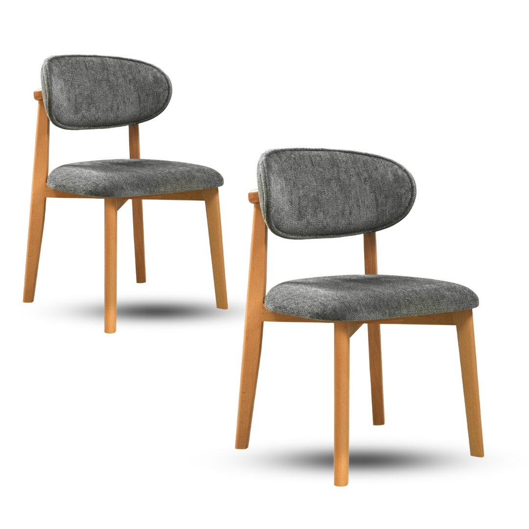 Krzesło do jadalni Inci – (zestaw 2 szt.) – Szara Tkanina Matis – Drewniane Nogi