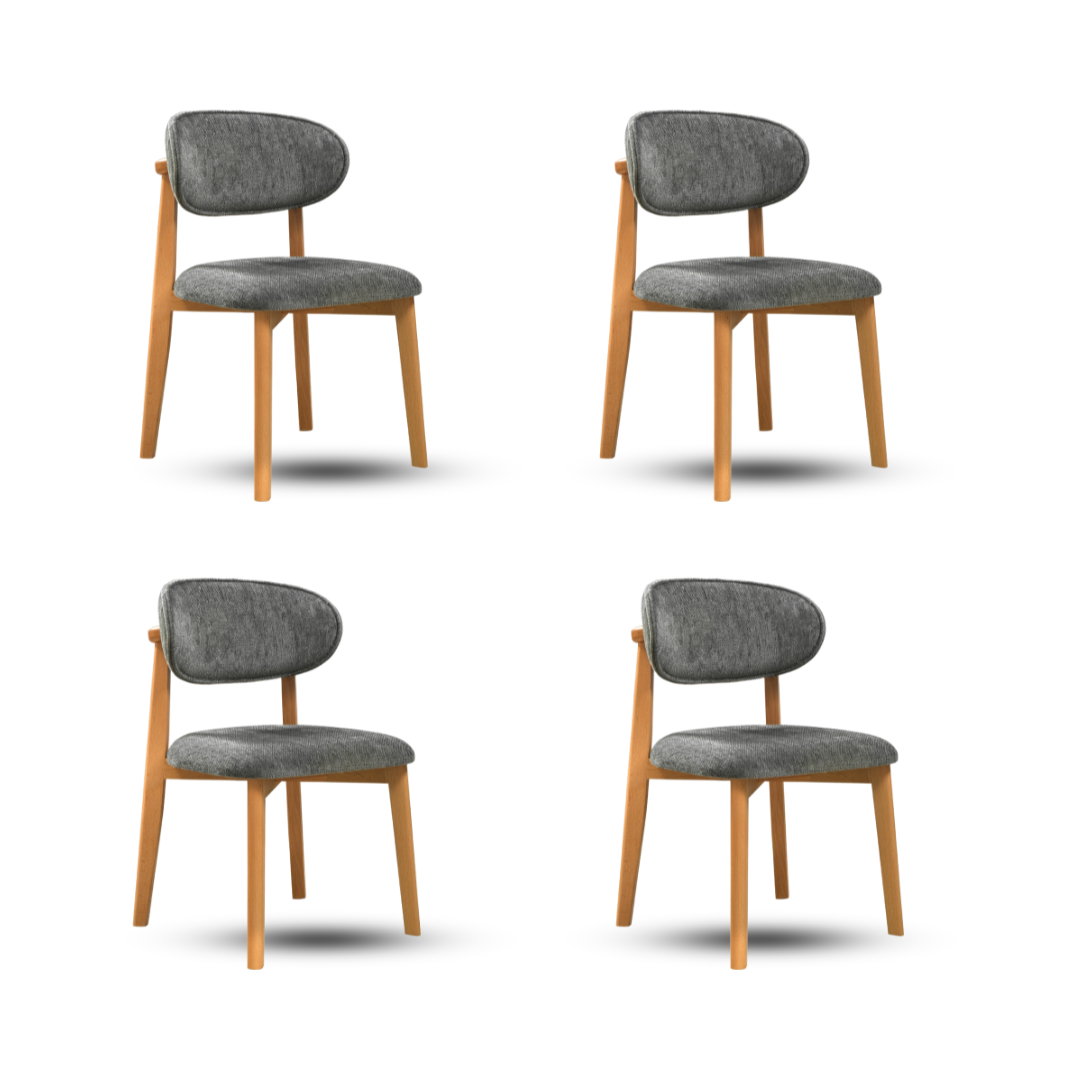 Krzesło do jadalni Inci – (zestaw 4 szt.) – Szara Tkanina Matis – Drewniane Nogi