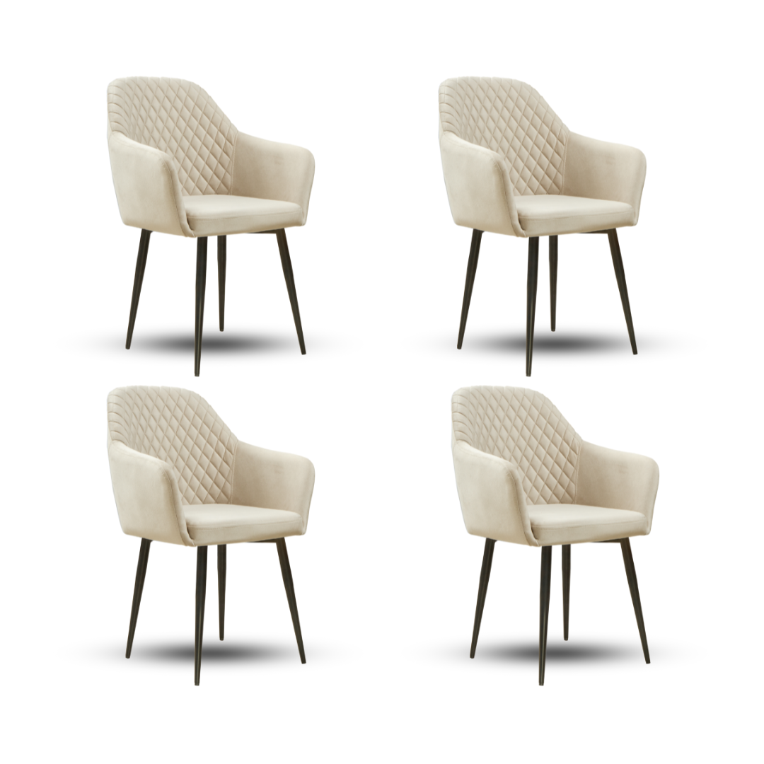 Krzesło do jadalni Maya – (zestaw 4 szt.) – Beżowa Aksamitna Tkanina – Czarne Metalowe Nogi