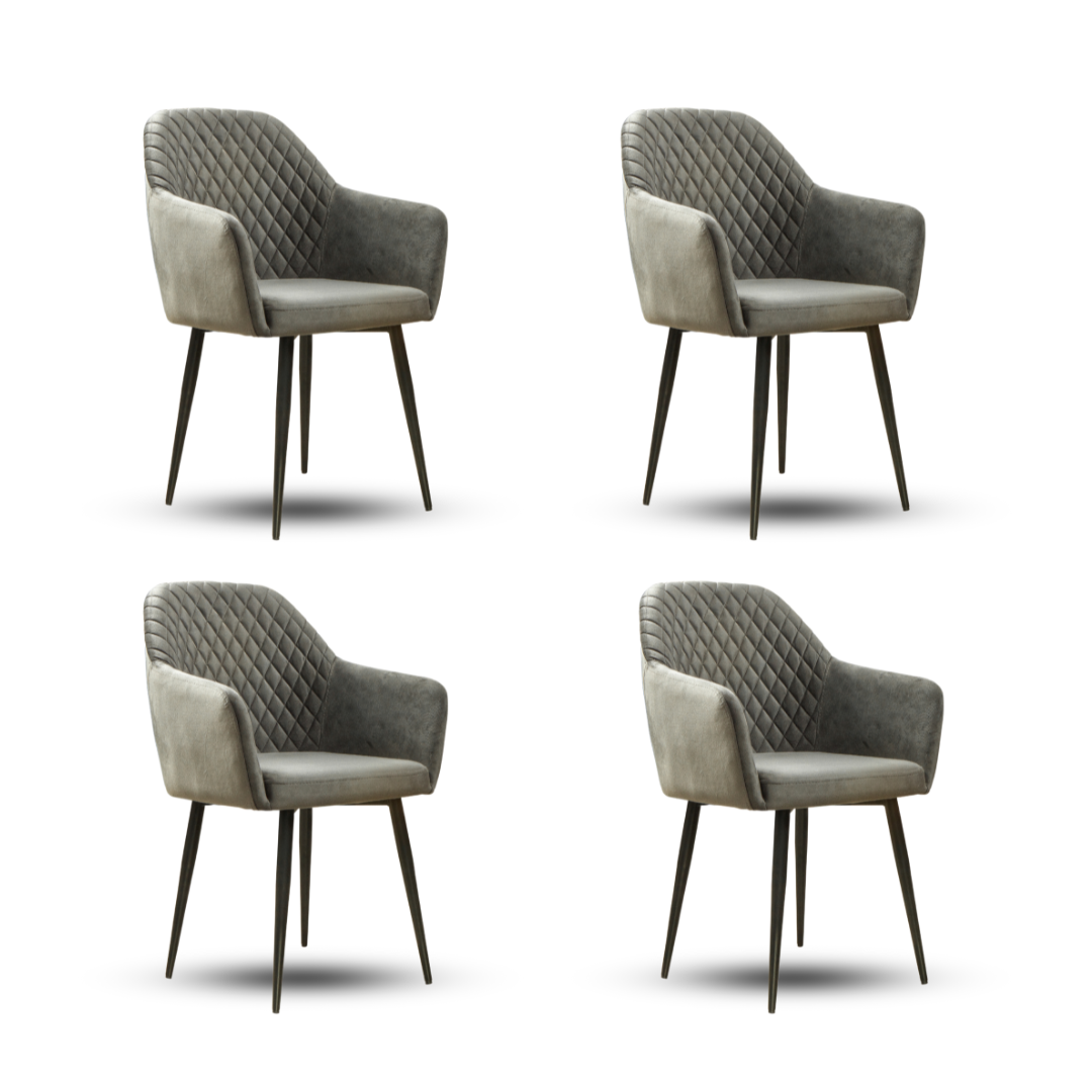 Krzesło do jadalni Maya – (zestaw 4 szt.) – Szara aksamitna tkanina – czarne metalowe nogi