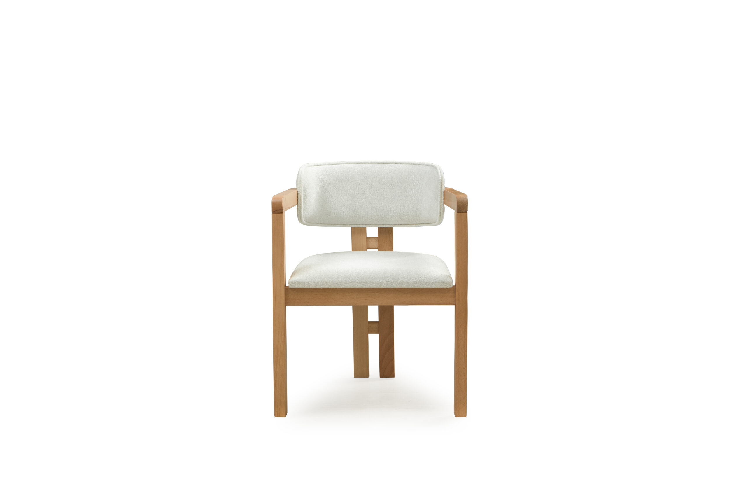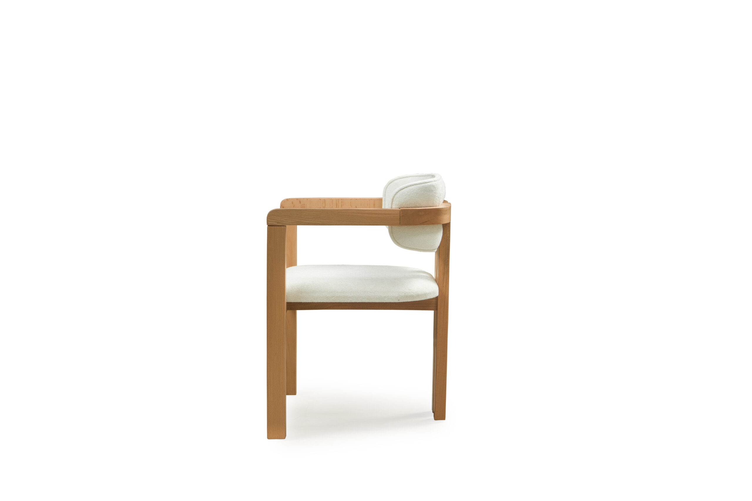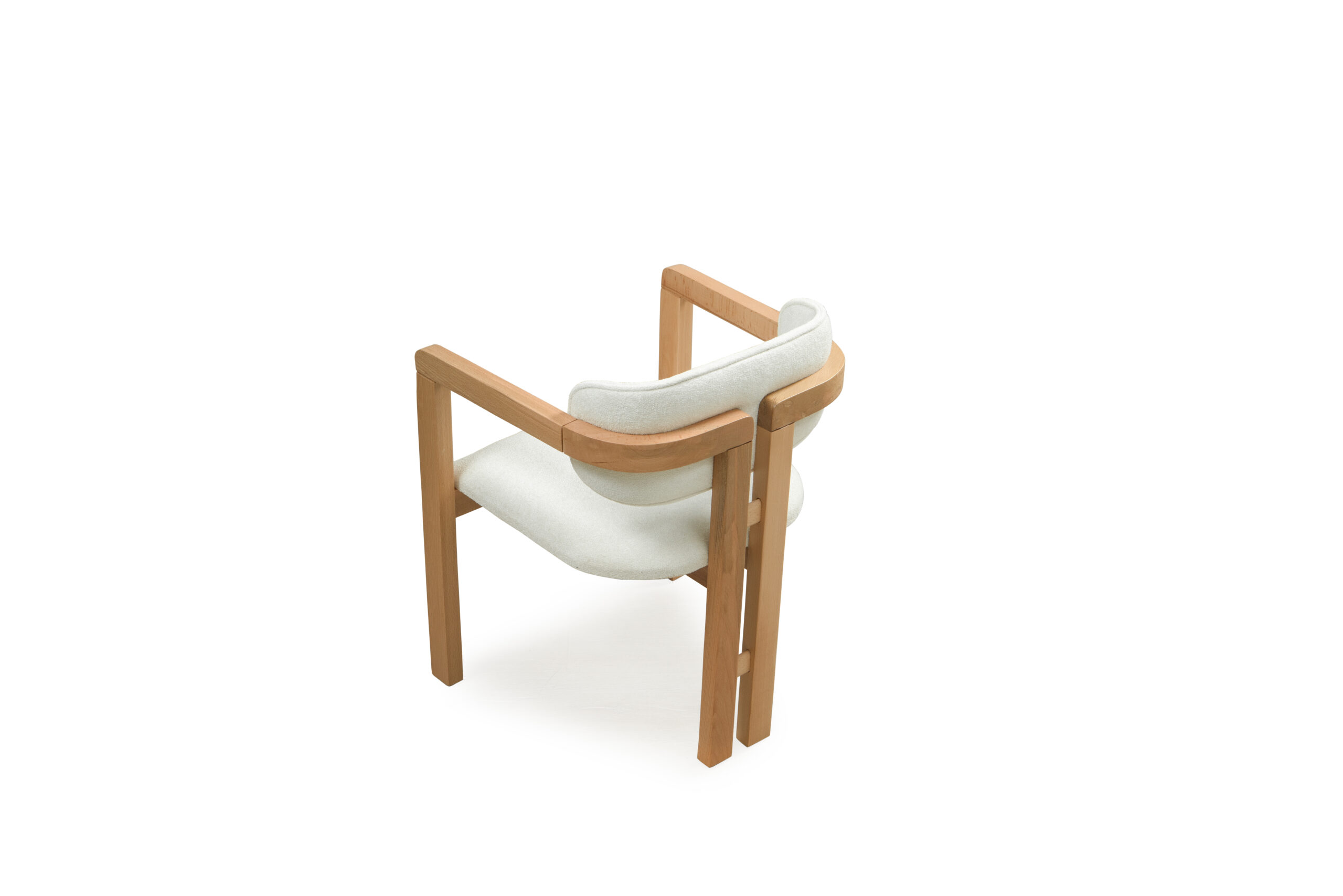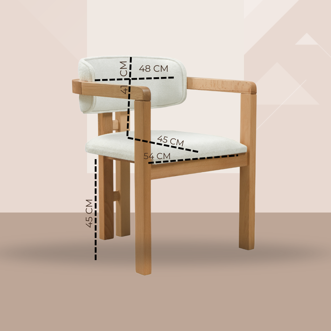 Krzesło do jadalni Milano – (zestaw 2 szt.) – Beżowa Tkanina Boucle – Drewniane Nogi