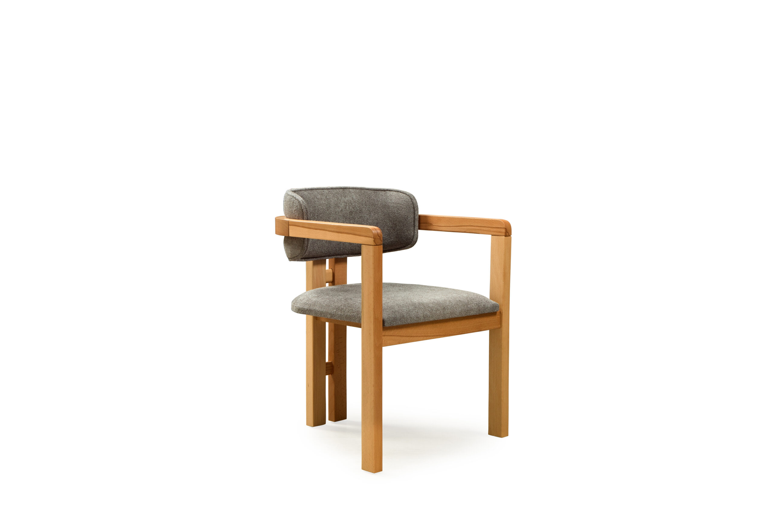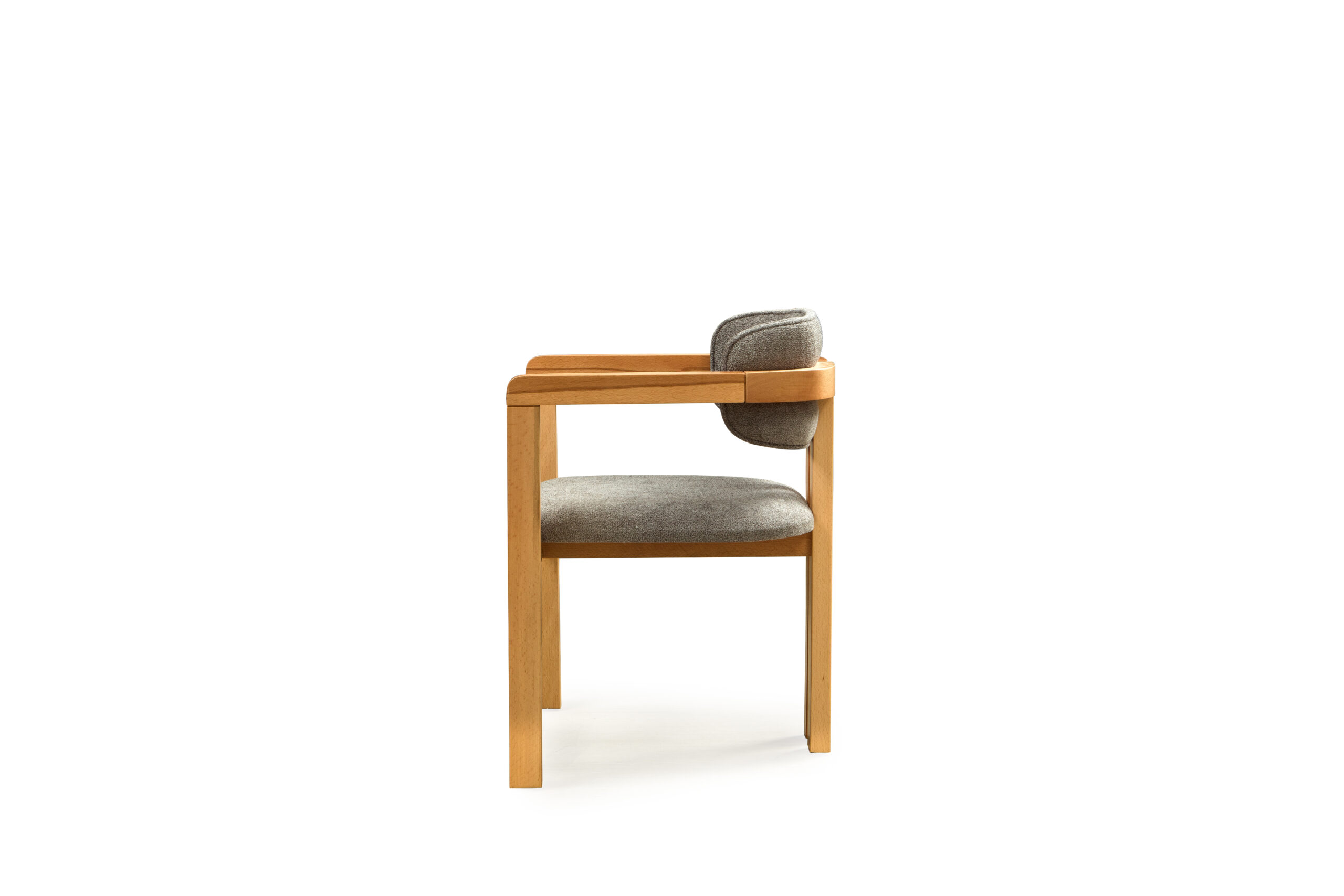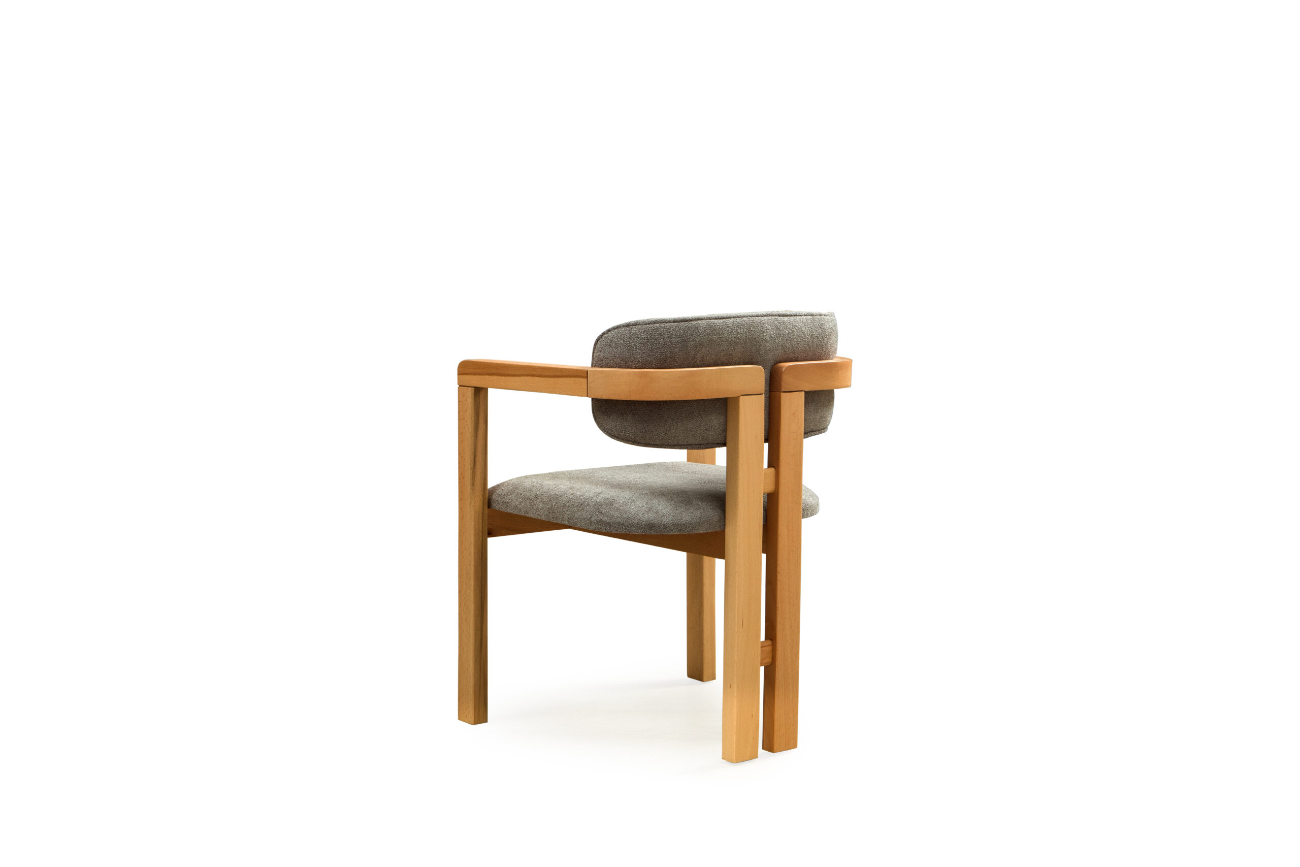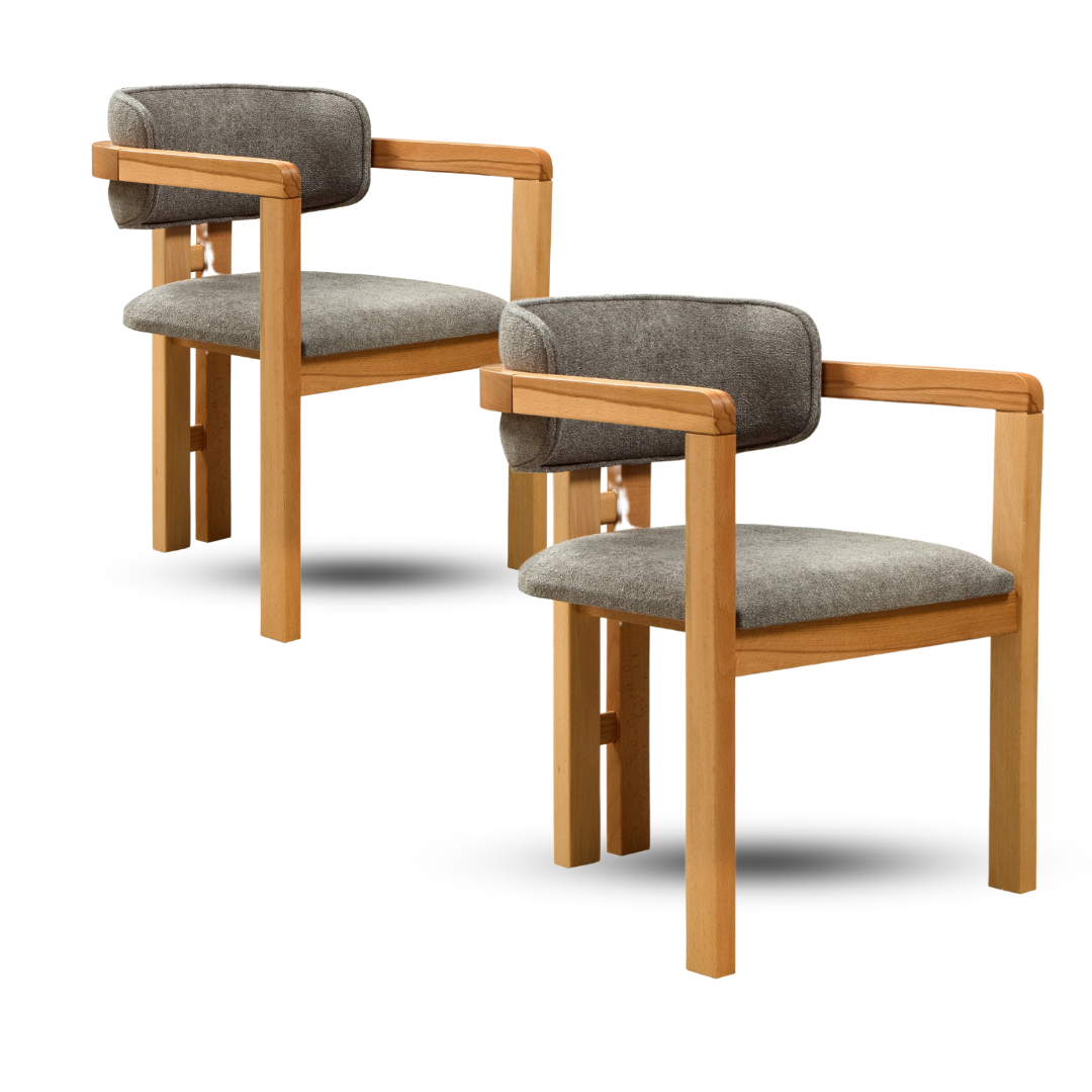 Krzesło do jadalni Milano – (zestaw 2 szt.) – Szara Tkanina Boucle – Drewniane Nogi