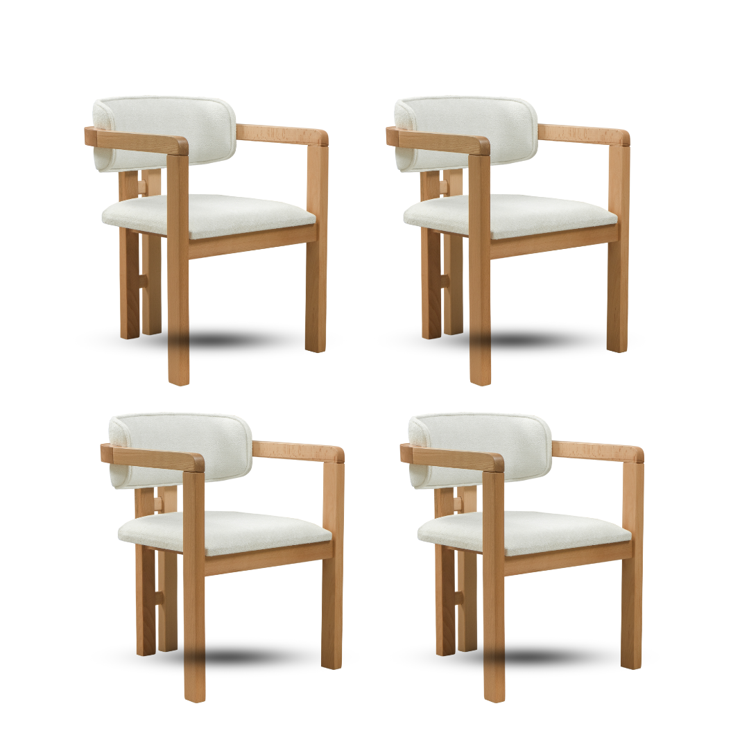 Krzesło do jadalni Milano – (zestaw 4 szt.) – Beżowa Tkanina Boucle – Drewniane Nogi