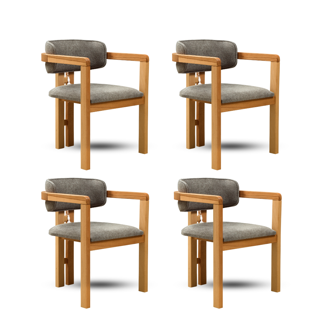 Krzesło do jadalni Milano – (zestaw 4 szt.) – Szara Tkanina Boucle – Drewniane Nogi
